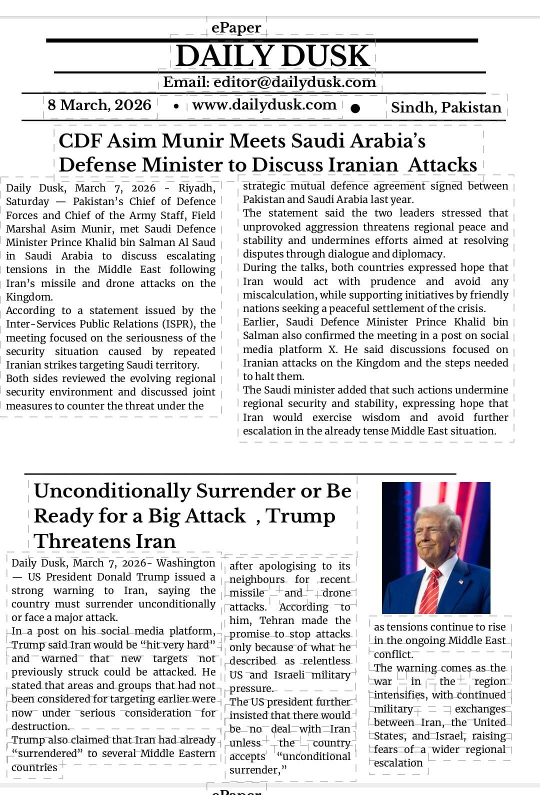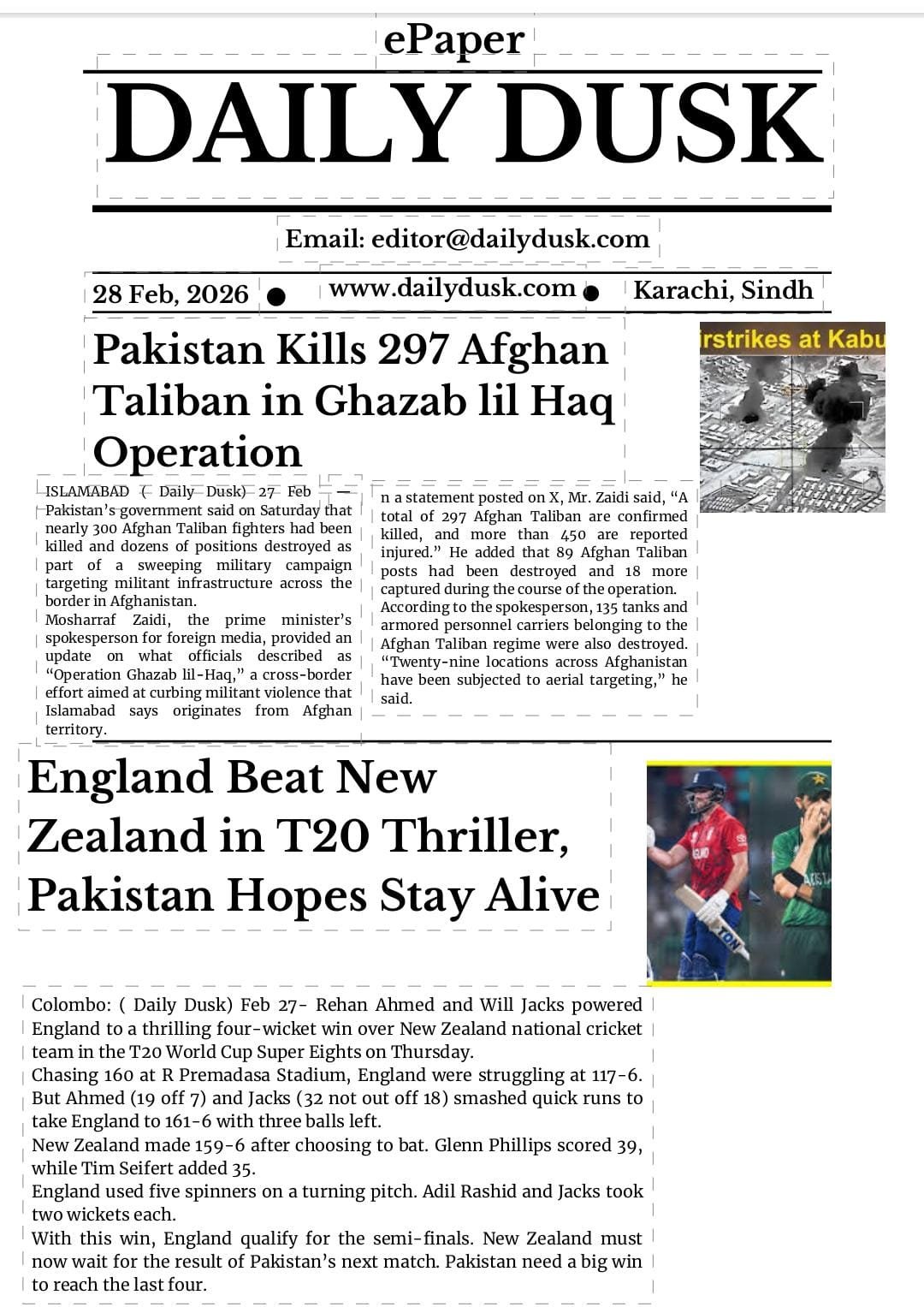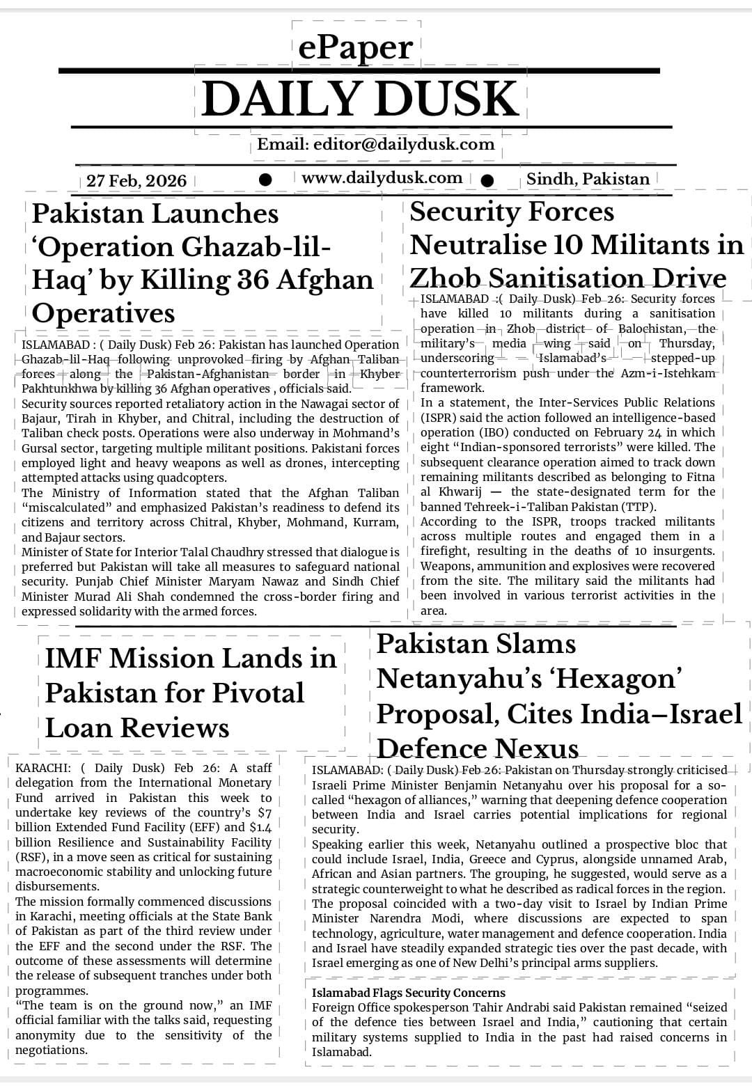 Breaking News ePaper ePaper , Daily Dusk, 22 Feb,2026 Daily Dusk Feb 22, 2026 0 ePaper Daily Dusk (2)Download Read More