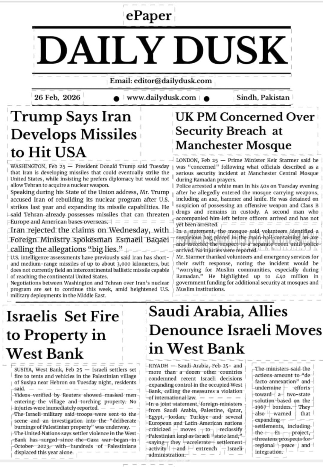Breaking News ePaper Featured ePaper, 25 Feb, Daily Dusk Daily Dusk Feb 25, 2026 0 ePaper , Daily Dusk, 25 Feb, 2026 (2)Download Read More