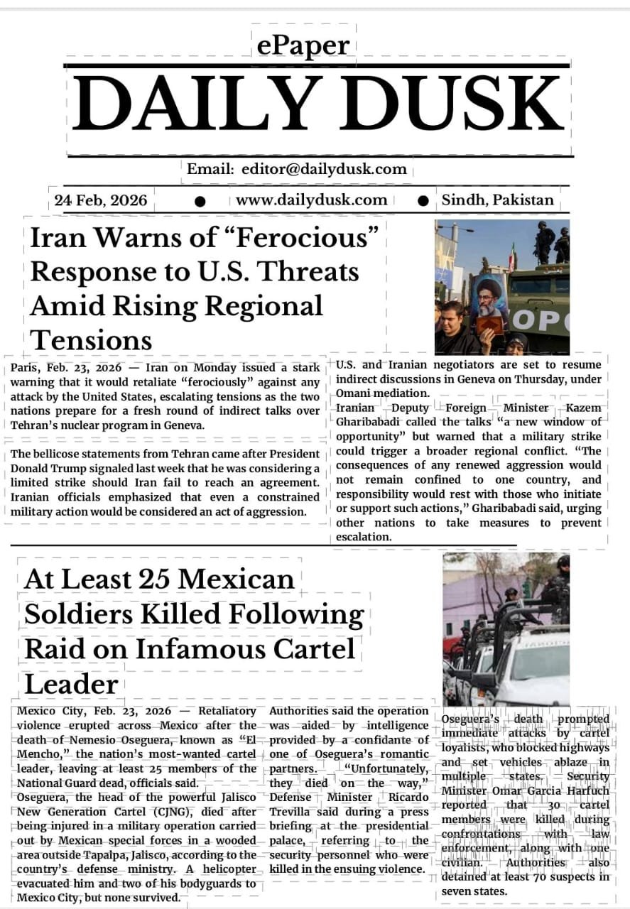 Breaking News ePaper ePaper, 24 Feb, Daily Dusk Daily Dusk Feb 24, 2026 0 ePaper Daily Dusk, 24 Feb,2026Download Read More
